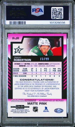 PC - Miro Heiskanen, Mavrik Bourque, and Lian Bichsel. Sets include Signature Renditions, YG Renewed, and Canada Post Auto Stamps.