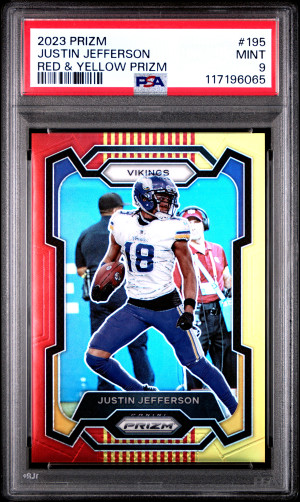 2023 Panini Prizm Justin Jefferson Red & Yellow Prizm. 01/44.