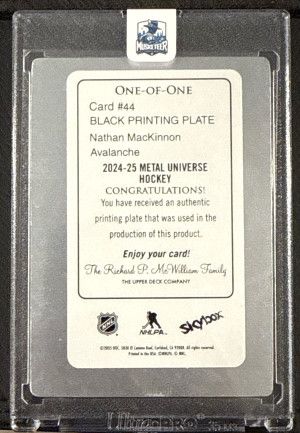 Nathan MacKinnon 1/1 #44 Black Printing Plate 2024-25 Metal Universe Hockey