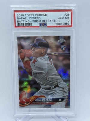 2018 Topps Chrome Rafael Devers Batting-Prism Refractor Rookie PSA 10