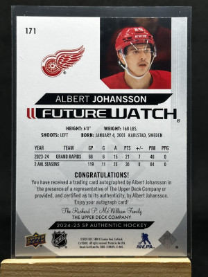 Albert Johansson 2024-25 Upper Deck SP Authentic Future Watch Auto /999 #171