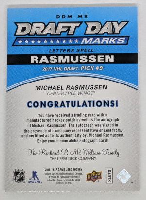 2018-19 SP Game Used DDM-MR Michael Rasmussen Draft Day Marks