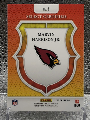 2024 Select Certified No.5 Zebra Marvin Harrison Jr Rookie Card