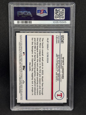 Wyatt Langford 2024 Topps Update #US341 Yellow Rookie (RC) PSA 10 - Rangers