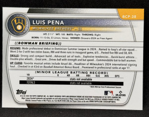 Luis Pena 2025 Bowman Chrome 1st Sapphire #BCP-38 - Brewers