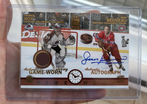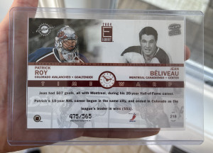 2003-04 Pacific Exhibit Time Warp Auto Jersey 475/565 #218 Patrick Roy & Jean Beliveau