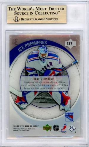 2005-06 Upper Deck Ice Premiers Rookie BGS 10 SSP Henrik Lundqvist