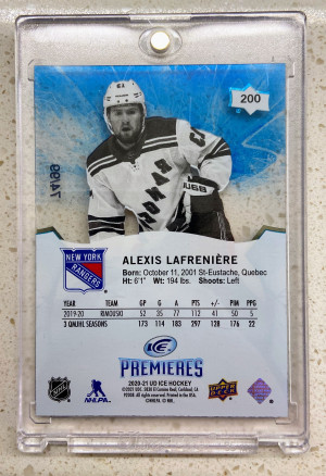 2020-21 UD Ice Premieres Rookie Alexis Lafreniere /99
