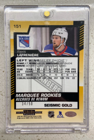 2020-21 OPC O-Pee-Chee Platinum Marquee Rookies Alexis Lafreniere Seismic Gold /50