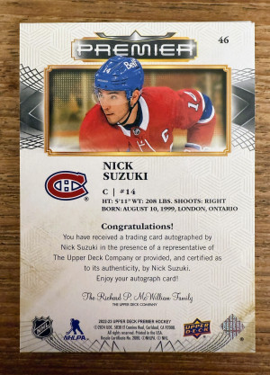2022-23 UD Premier Nick Suzuki Auto Gold /25