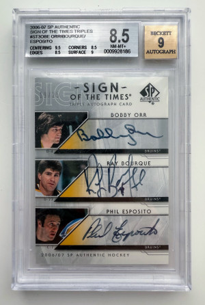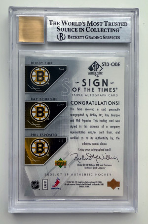 2006 SP AUTHENTIC SIGN OF THE TIMES TRIPLES ORR BOURQUE ESPOSITO/25 BGS 8.5
