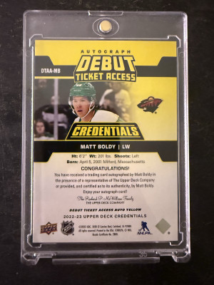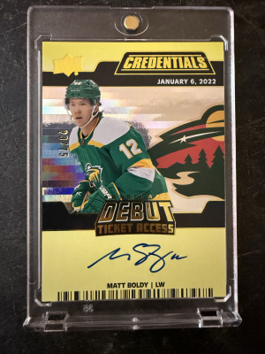 2022-23 UD Credentials Matt Boldy Debut Ticket Access Auto /75