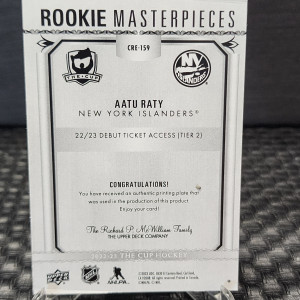 2022-23 UD The Cup Aatu Raty Rookie Masterpieces Magenta Printing Plate RC 1/1
