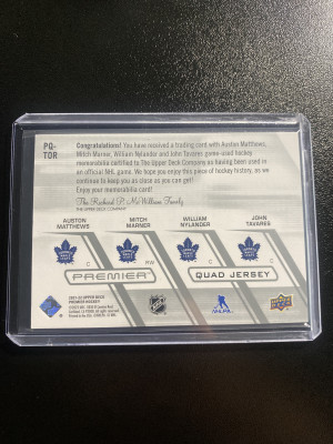 Auston Matthews/Mitch Marner/William Nylander/John Tavares 21-22 Premier Quad Jersey 8/25