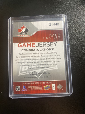 Dany Heatley 14-15 UD S1 Team Canada Game Jersey
