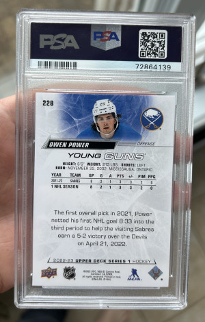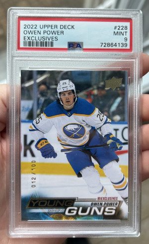 2022-23 Upper Deck Series One YG Exclusives 012/100 #228 Owen Power PSA 9
