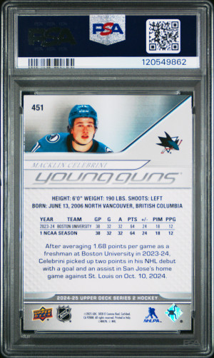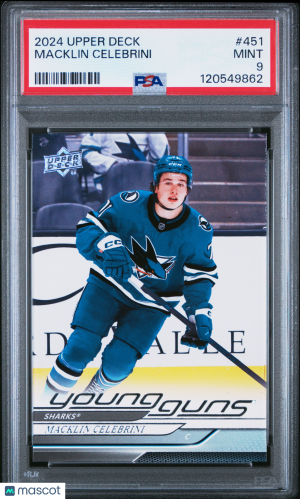 Macklin Celebrini 2024 Upper Deck Young Guns Rookie #451 PSA 9
