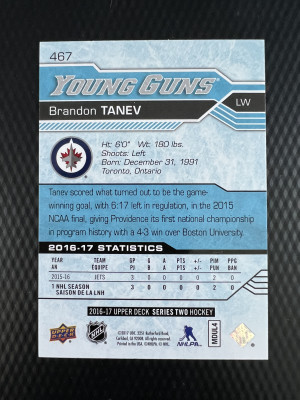 2016-17 Upper Deck Brandon Tanev Young Guns