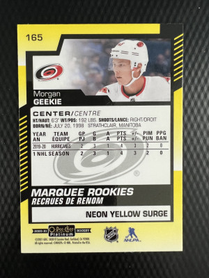 2020 O-Pee-Chee Platinum Morgan Geekie #165 Rookie
