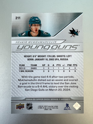 2024-25 Upper Deck Series 1 Shakir Mukhamadullin #211 Young Guns