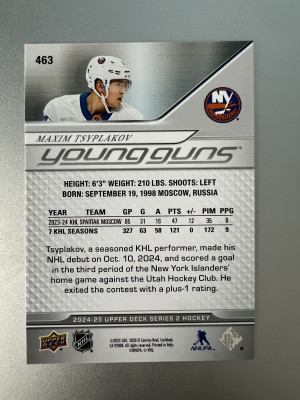 2024-25 Upper Deck Series 2 Maxim Tsyplakov #463 Young Guns