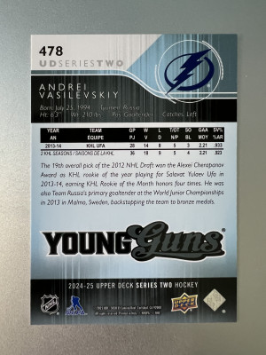 1994 2024-25 Upper Deck Young Guns Andrei Vasilevskiy #478 Rookie