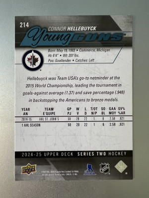 2024-25 Upper Deck Young Guns Series Two Connor Hellebuyck Parallel/Variety