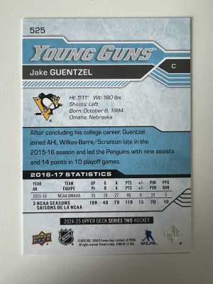 2025 2024-25 Upper Deck Young Guns Jake Guentzel #525 Rookie