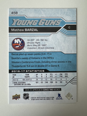 2025 2017-18 Upper Deck Young Guns Mathew Barzal #458 Rookie