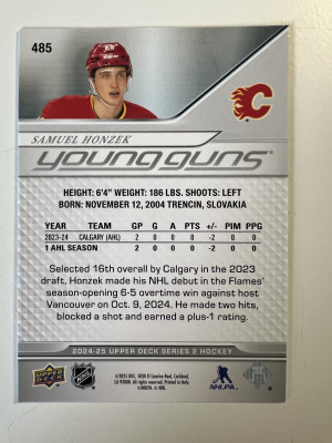 2025 2024-25 Upper Deck Young Guns Samuel Honzek Rookie