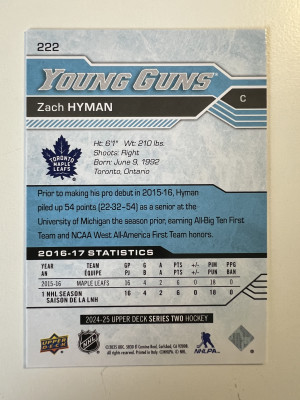 2025 2024-25 Upper Deck Young Guns Zach Hyman Parallel/Variety