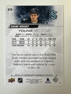 2023 2022-23 Upper Deck Series 2 Young Guns Shane Wright Rookie