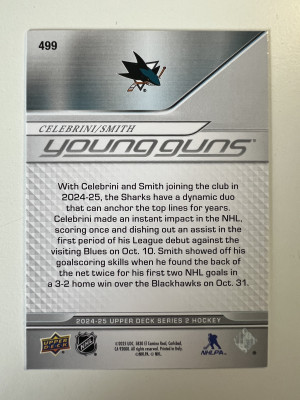 2025 2024-25 Upper Deck Series 2 Young Guns Macklin Celebrini Will Smith Rookie