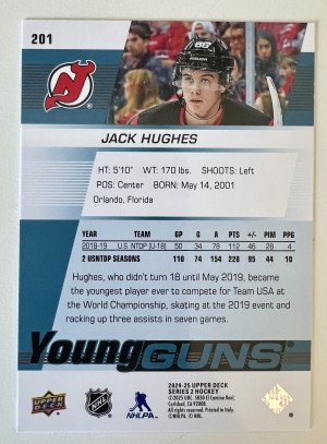 2025 2024-25 Upper Deck Young Guns Jack Hughes Rookie