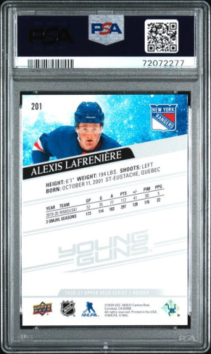 2020-21 Upper Deck Alexis Lafreniere Young Guns PSA 10