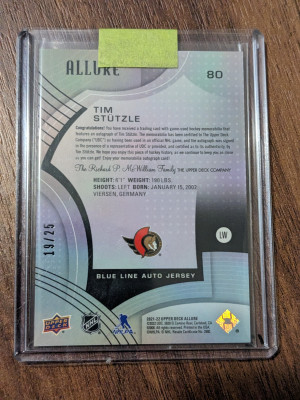 Tim Stutzle /25 Blue Line Jersey auto 2021-22 Allure