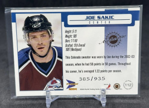 Joe Sakic 2003-04 Pacific Prism Game-Worn Jersey /935 #112 Avalanche