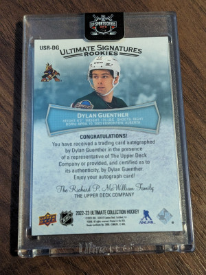 2022 UPPER DECK ULTIMATE COLLECTION DYLAN GUENTHER SIGNATURES ROOKIES RC AUTO