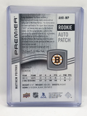 Matthew Poitras 2023-24 Upper Deck Premier Rookie Auto Patch 3 Color / 99