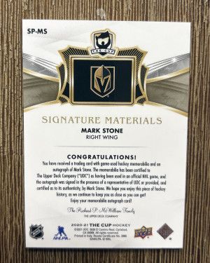 2020-21 UD The Cup Signature Materials 01/25 #SPMS Mark Stone