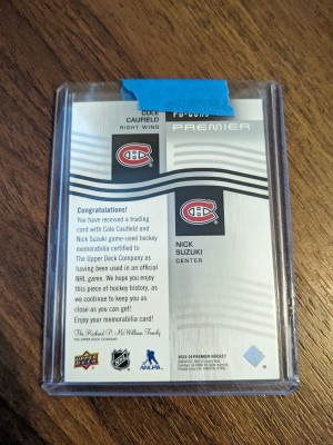 2023-24 UD Premier Dual Jersey Caufield/Suzuki (10/99) – Canadiens