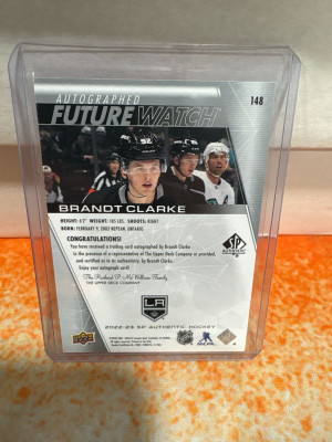 2022-23 Upper Deck SP Authentic INSCRIBED Future Watch Auto /999 Brandt Clarke