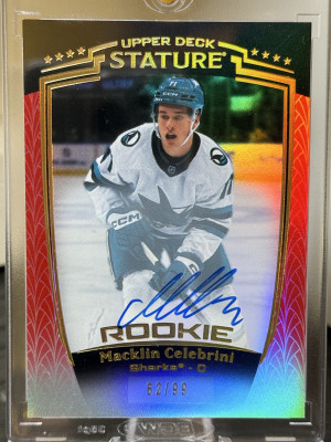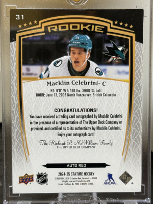 2024-25 Stature Macklin Celebrini Rookie Red Auto /99