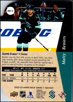 2022-23 Upper Deck Series 1 #RDT-3 Matty Beniers RC Gold Foil Die-Cut