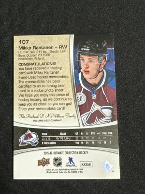 Mikko Rantanen 2015-16 Ultimate Collection Silver #107 JSY /149 Rookie Card