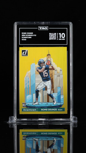 #15 Rome Odunze 2024 Donruss Downtown! Gold Serial#/10 Gem Mint 10