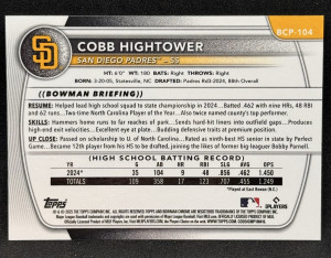 Cobb Hightower 2025 Bowman Chrome 1st #BCP-104 Yellow Sapphire /75 - Padres