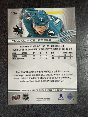 2025-26 Upper Deck Exclusives Macklin Celebrini
