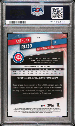 Anthony Rizzo 2019 Finest Anthony Rizzo Purple Refractor /250 PSA 10