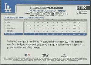 2025 Topps Holiday Yoshinobu Yamamoto #H159 - LA Dodgers